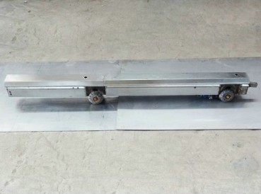 89補口機的車體由多節(jié)車身組成,其特征在于:所述行走機構(gòu)包括行走電機、傳動機構(gòu)、至少一對主動輪和一對從動輪,在車體后部的至少一節(jié)車身的一端安裝有滾輪支架,每對從動輪安裝在相應(yīng)的滾輪支架的兩側(cè),相鄰兩節(jié)車身之間通過連接軸連接,每個所述滾輪支架均由左、右支架組成,滾輪支架的外形高度和寬度均小于車體的直徑,在左、右支架的下部內(nèi)側(cè)各安裝有軸承,在軸承上安裝有從動軸,在左右支架的外側(cè)各安裝有一輪軸連接套,所述輪軸連接套的一端連接所述從動軸,另一端連接從動輪;所述主動輪安裝在車體前部并由行走電機和傳動機構(gòu)傳動,每對主動輪分別經(jīng)輪軸連接套與主動軸的兩端連接;所述傳動機構(gòu)包括電機連接套、減速機殼、渦輪和渦桿,所述主動軸通過軸承支撐在減速機殼上,主動軸上固裝有渦輪,渦輪與蝸桿嚙合,蝸桿通過軸承支撐在減速機殼上并通過電機連接套與行走電機相連。
